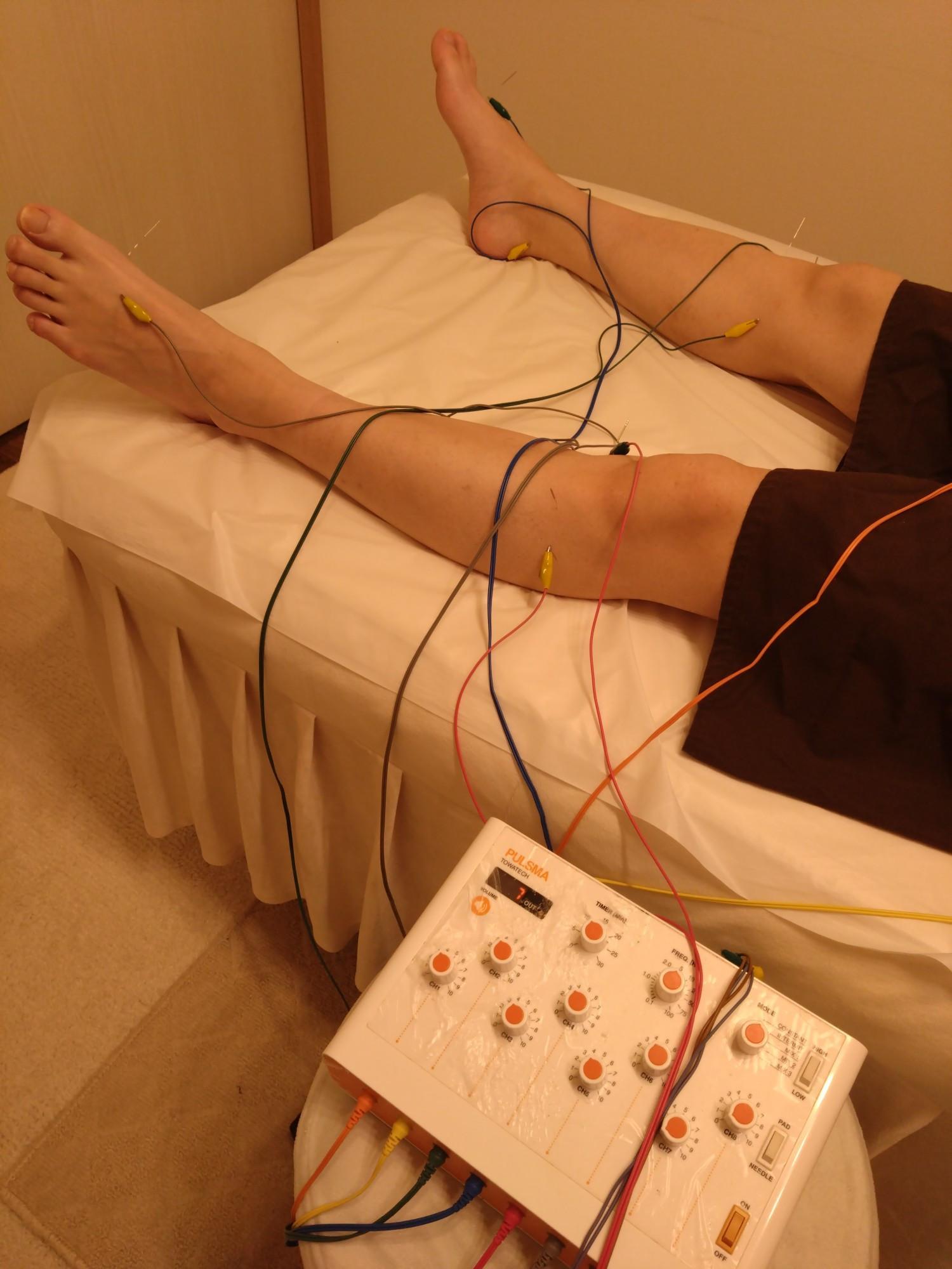 頭皮にあるツボに鍼を打ち微弱な電気をながしていきます。